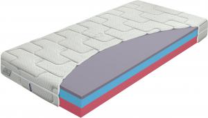 vrchní deska: pěna AIRGEL; střední profil: měkčená ELIOCELL pěna hustoty 28 kg/m3; spodní profil: antibakteriální komfortní pěna